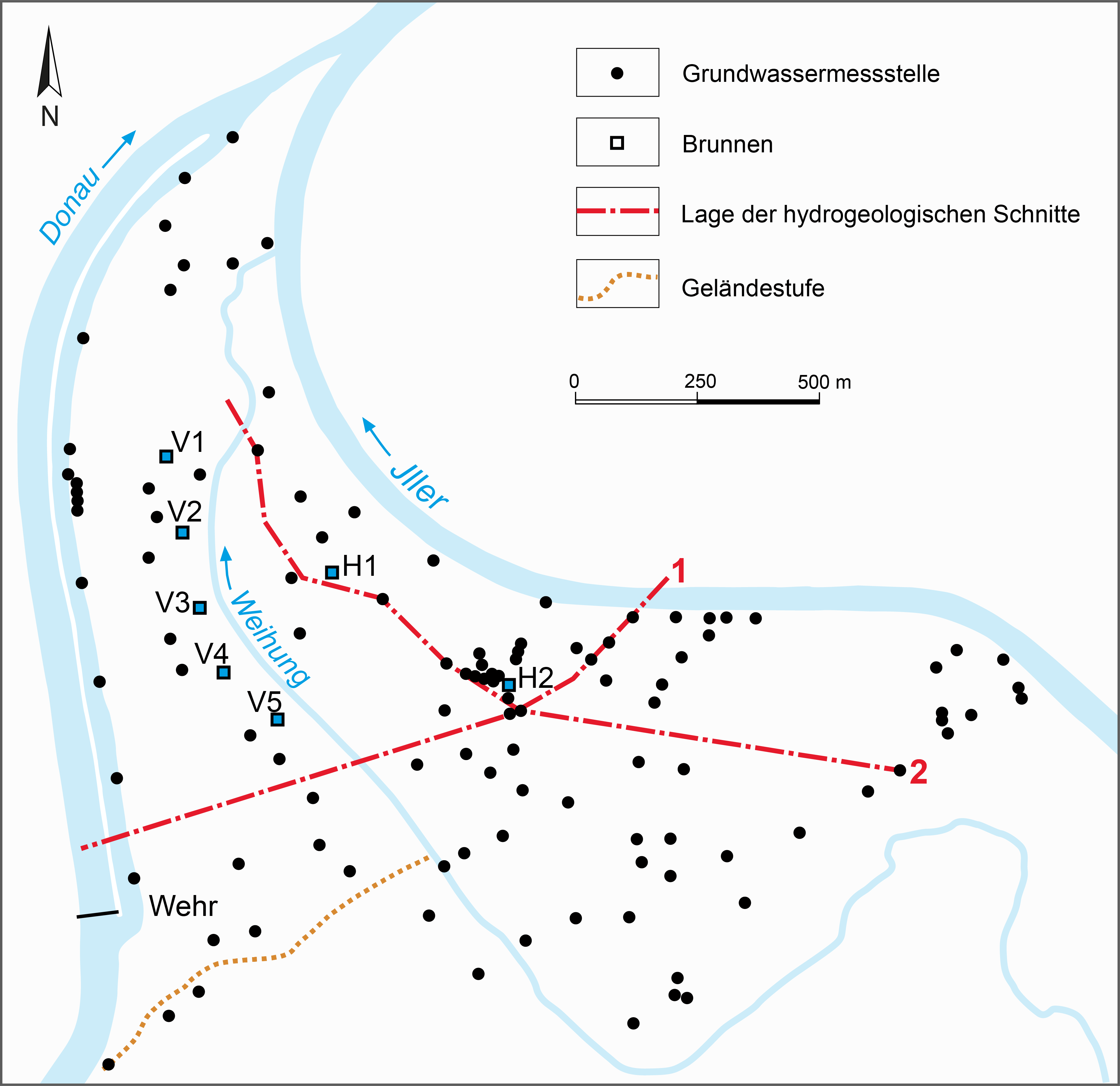 Die Grundwasserdynamik ist maßgeblich durch die Infiltrationsprozesse von Donau und Iller kontrolliert.