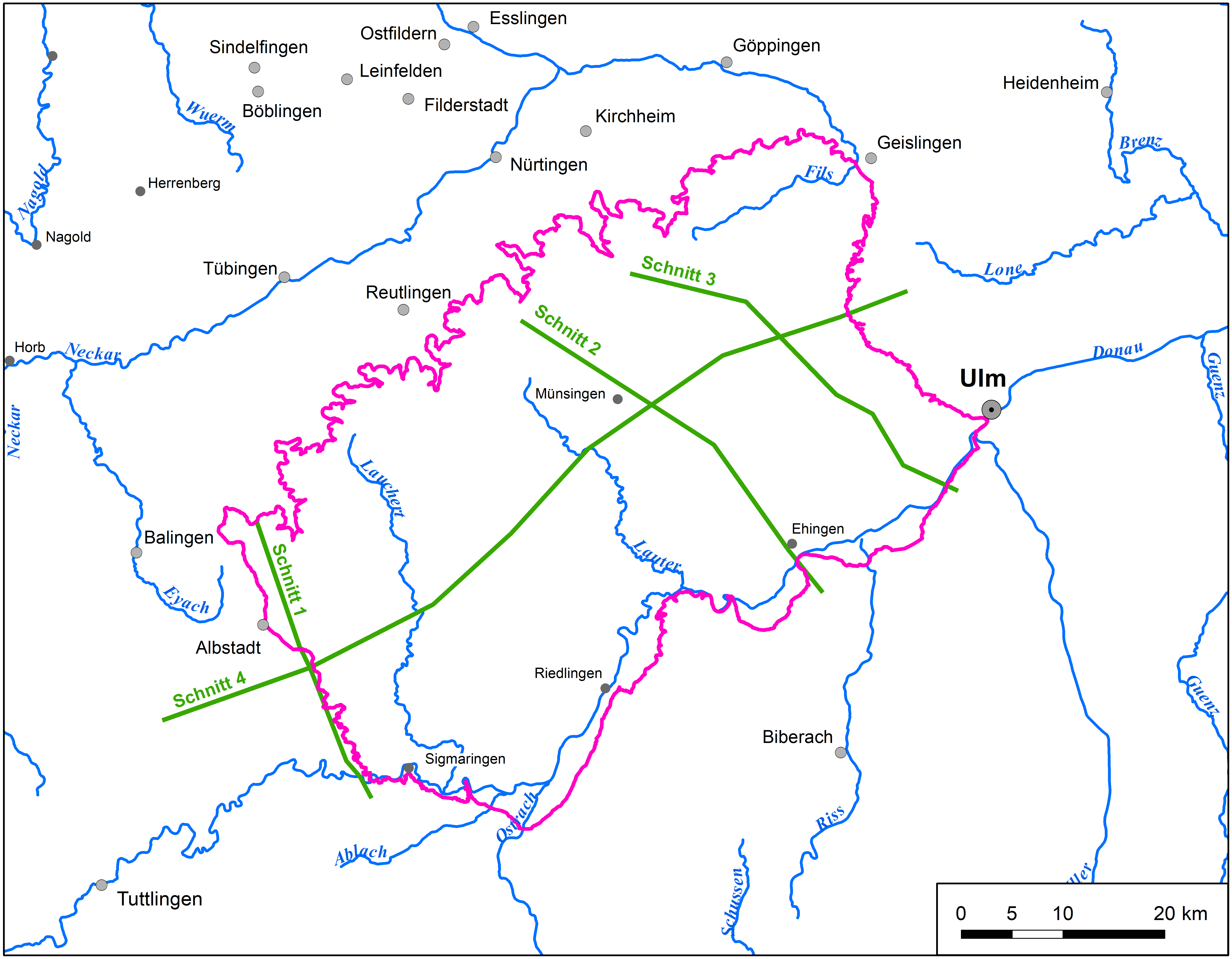 - (2004a). Mittlere Alb – Mappe 2. Grundwasserdynamik, Grundwassergleichen. – Hydrogeologische Erkundung Baden-Württemberg, 68 S., 2 Karten, 1 CD-ROM, Ulm (Gewässerdirektion Donau/Bodensee Bereich Ulm; Landesamt für Geologie, Rohstoffe und Bergbau Baden-Württemberg; Landesanstalt für Umweltschutz Baden-Württemberg; Büro für Hydrogeologie E. Funk, Staufen i. Br.).